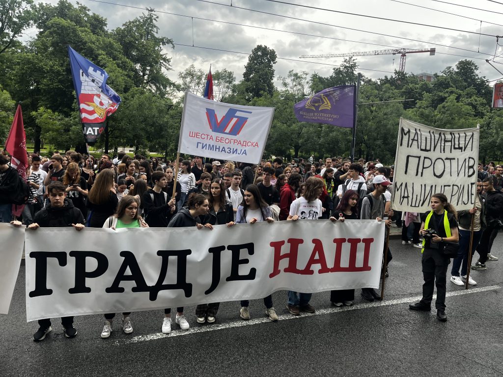 Srednješkolce su podržali i građani, studenti i profesori. Saobraćaj je obustavljen u Nemanjinoj ulici, u delu između Resvske i Svetozara Markovića. Okupljeni su nosili transparentne sa natpisima: “Mašinci protiv mašinerije”, “Lažna vlada”, “Grad je naš”, kao i zastave svojih škola i fakulteta. Ulicama su odjekivale pištaljke i uzvici “Pumpaj”.